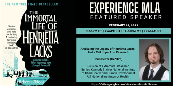 Join the African American Medical Librarians Alliance (AAMLA) Caucus for a 3-part discussion of The Immortal Life of Henrietta Lacks by Rebecca Skloot during the Experience MLA annual event.