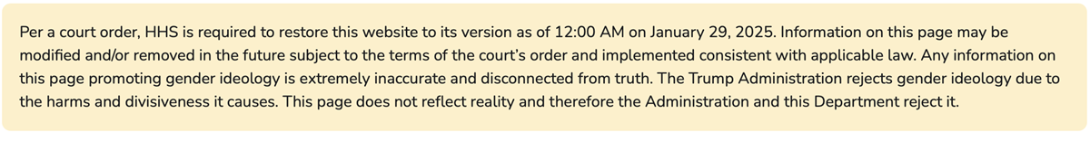 Most of you have noticed some peculiar messaging that is being posted on some government websites. Examples of messaging are below: