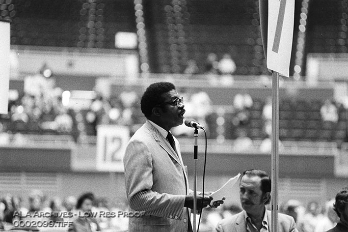 Josey pushed for removing outdated racial terms from Library of Congress Subject Headings and protested ALA's controversial film The Speaker.
