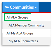If you want to find new groups you can participate in, click All ALA Groups under Communities in the navigation for a full list of the groups you can see.